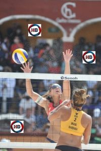 Tlaxcala, Tlax., (20/mar/2022). Las jugadoras brasileñas Bárbara Seixas y Carol Solberg Salgado se impusieron en dos sets a las holandesas Katja Stam y Raisa Schön, con parciales de 21/19 y 21/18, en la gran final del torneo Challenge Pro correspondiente al Tour Mundial de voleibol de playa, celebrado en la ciudad de Tlaxcala, en la plaza de toros Jorge “el Ranchero” Aguilar.