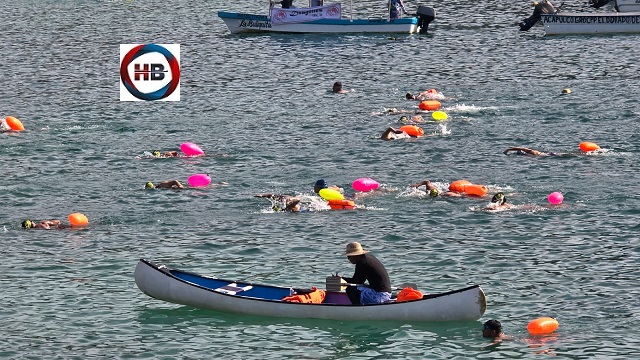 Acapulco, Gro., (6/dic/2025). Cientos de nadadores participaron en el primer día de actividades del 66 Maratón Internacional de Natación de Aguas Abiertas Acapulco 2025, en la ruta de los mil metros, entre la isla La Roqueta y la playa de Caleta, la mañana del sábado desde las 7 horas, con nueve salidas y 27 categorías en acción, en un día festivo y plenamente deportivo en la zona Tradicional de Acapulco.